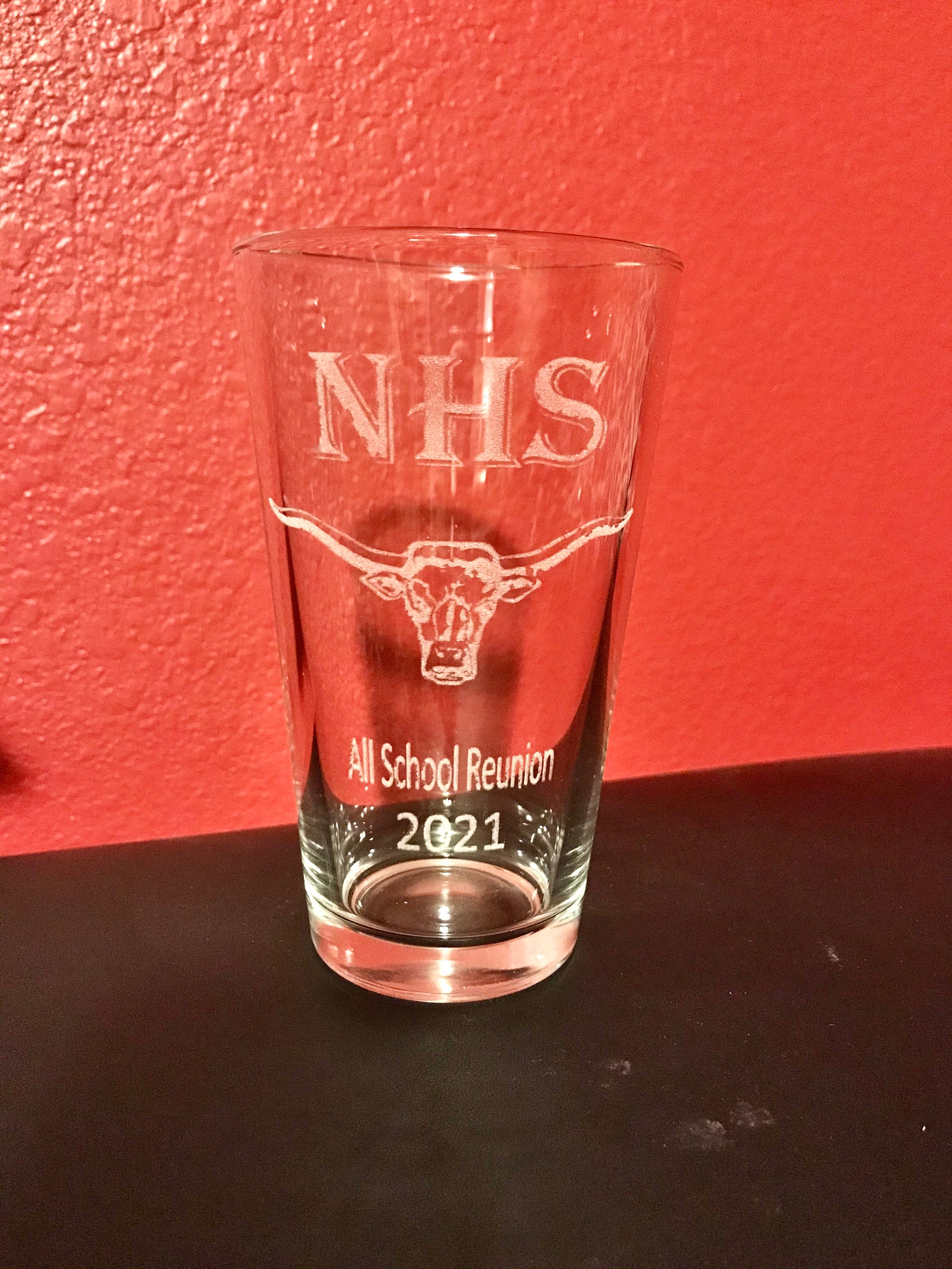 Custom Newcastle All School Reunion glass. This option is customized with your graduation year on the back. These can be shipped wherever you would like if you are not attending the reunion. If you are attending the reunion, please order the other listing option so you are not charged shipping.